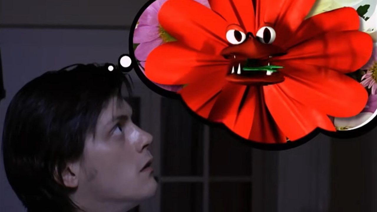 After picking up a card with a seductive message, (Trevor) arms himself with a baseball bat as he follows a trail of rose petals upstairs, thinking there's a flower monster in the bedroom.
